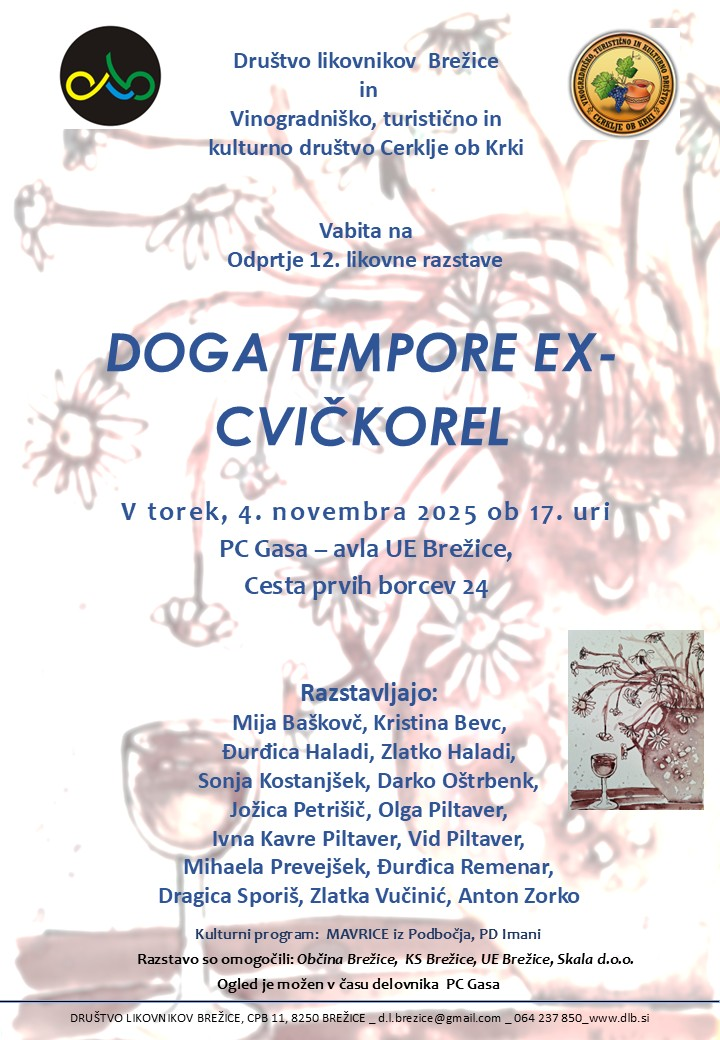Doga tempore EX- CvičkorelDatum: torek, 4. november 2025Čas: 17.00Organizator: Društvo likovnikov Brežice in Vinogradniško, turistično in kulturno društvo Cerklje ob Krki